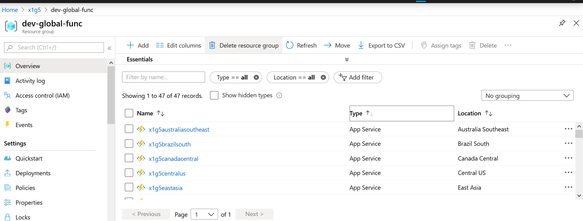 There’s a single Application Insights resource for the entire deployment. This is something to be careful of over time. The cost in global data transfer could become prohibitive if there’s a lot of logs: